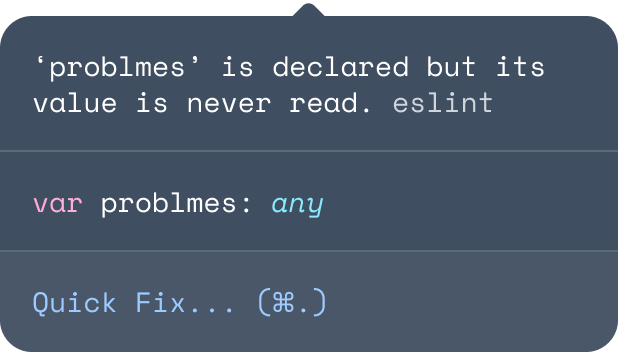 了解更多关于使用 ESLint 发现问题的信息ESLint 发现的许多问题都可以自动修复。ESLint 自动修复是语法敏感的,所以你不会遇到由传统的查找和替换算法引入的错误。